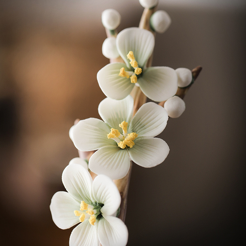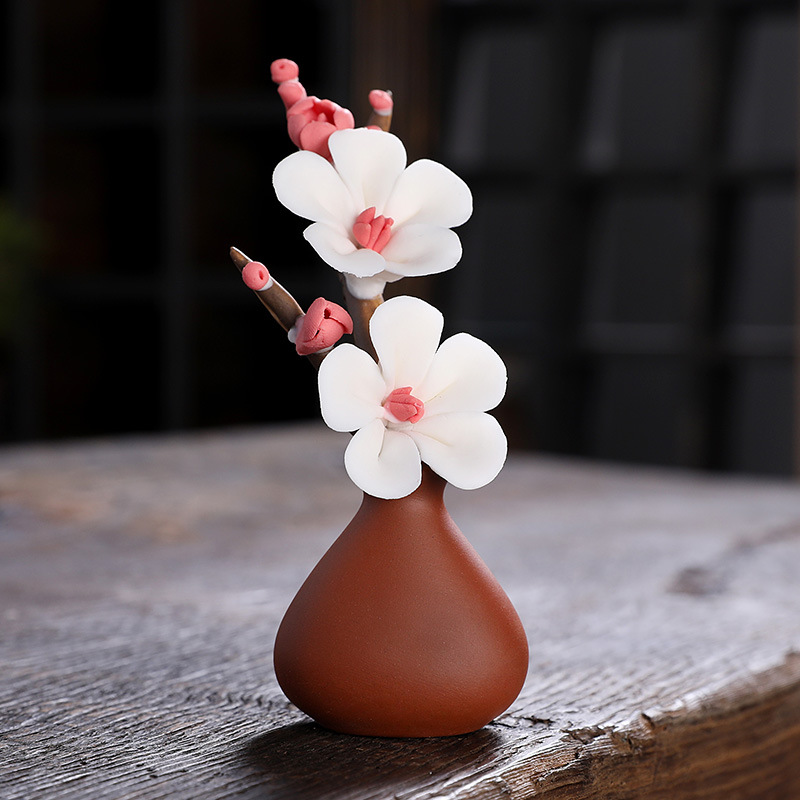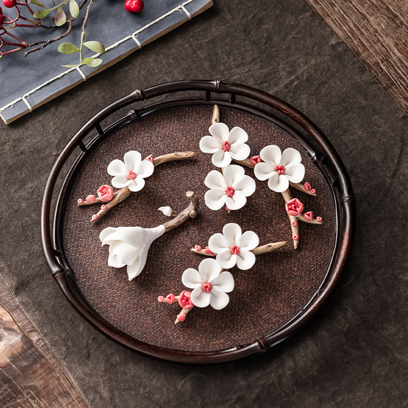 Qiaofeng 手作り梅の花の線香セラミックフラワークリエイティブペンホルダー日本茶道装飾茶ペット禅装飾品仏供養用