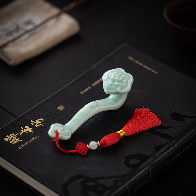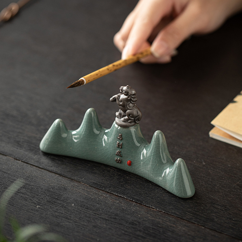 玉如意棚の小さい取っ手の陶磁器の家庭用の筆は文房の四宝の書道の鎮紙の筆の棚の茶道の装飾を託します。