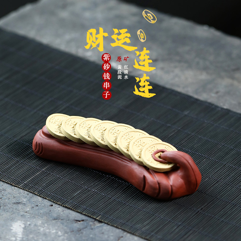 宜興紫砂茶寵置物招財入宝銭串子筆架金運連茶游鎮紙模造器彫刻