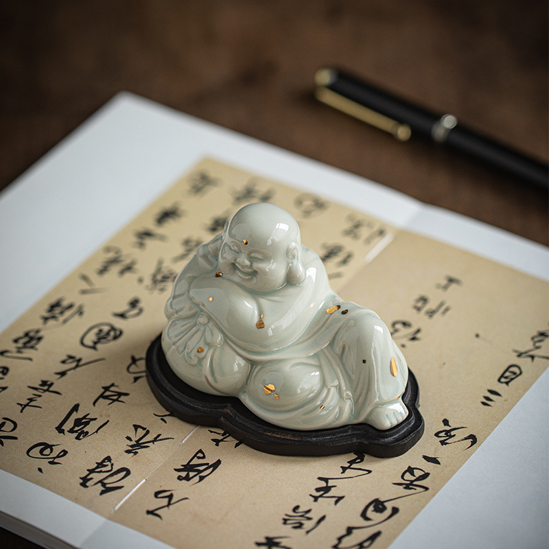 中国式陶磁器の弥勒仏のお茶の寵愛の置物は金を招きます。