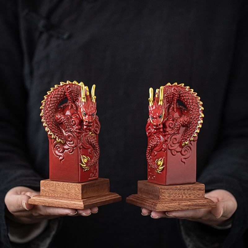 創意陶磁器の生肖龍璽の茶の寵愛は竜年のマスコットの竜印の禅意の書斎の紙の博古の棚の装飾を並べます。