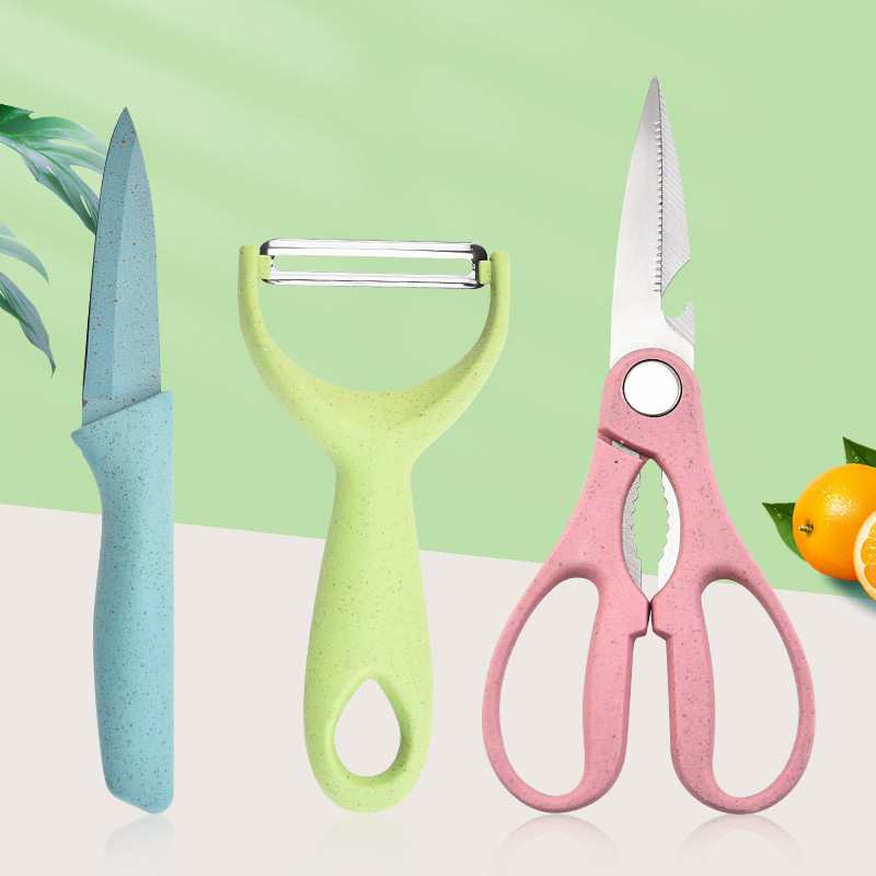 現物卸売り麦わら三点セットカラー抽出箱料理宝三点セットステンレス果物ナイフ台所用カットセット