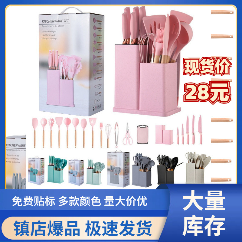 19点セットの調理器具セットのシリカゲルの組み合わせの調理器具19点セットの双筒の麦わらのシリカゲルの調理器具の贈り物セットの刃物
