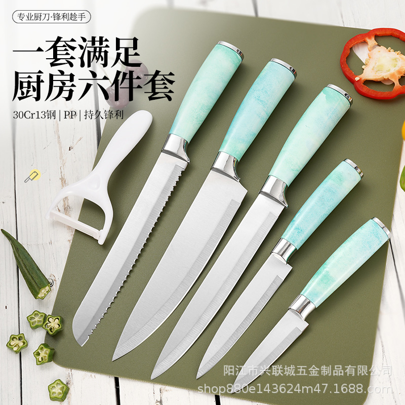 クロスボーダー現物ステンレス刃物波紋圧紋刃物セット包丁6点セットキッチンプレゼントセット