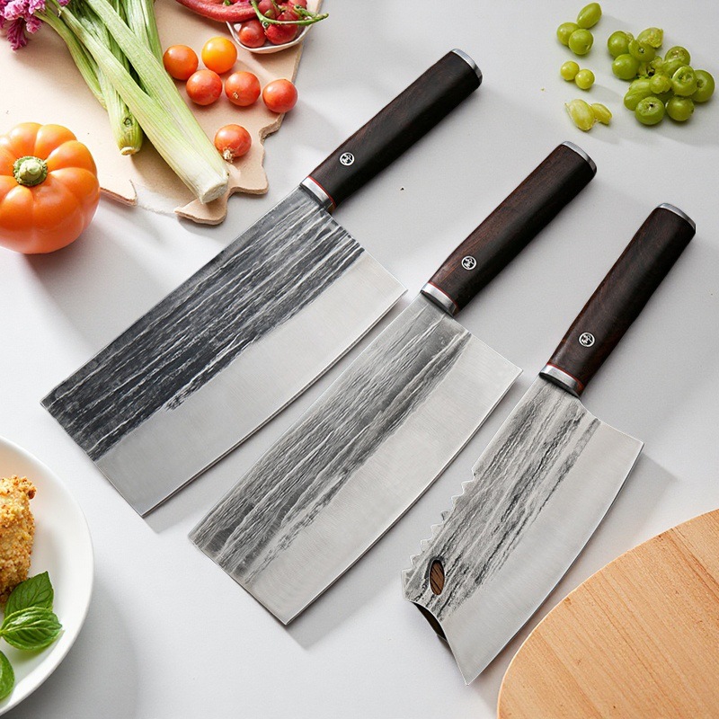 ステンレス鋼包丁キッチンナイフ3点セット鍛造槌目模様鶏肉・鴨肉・鶏肉の切り身用家庭用ナイフスライスナイフシェフナイフ