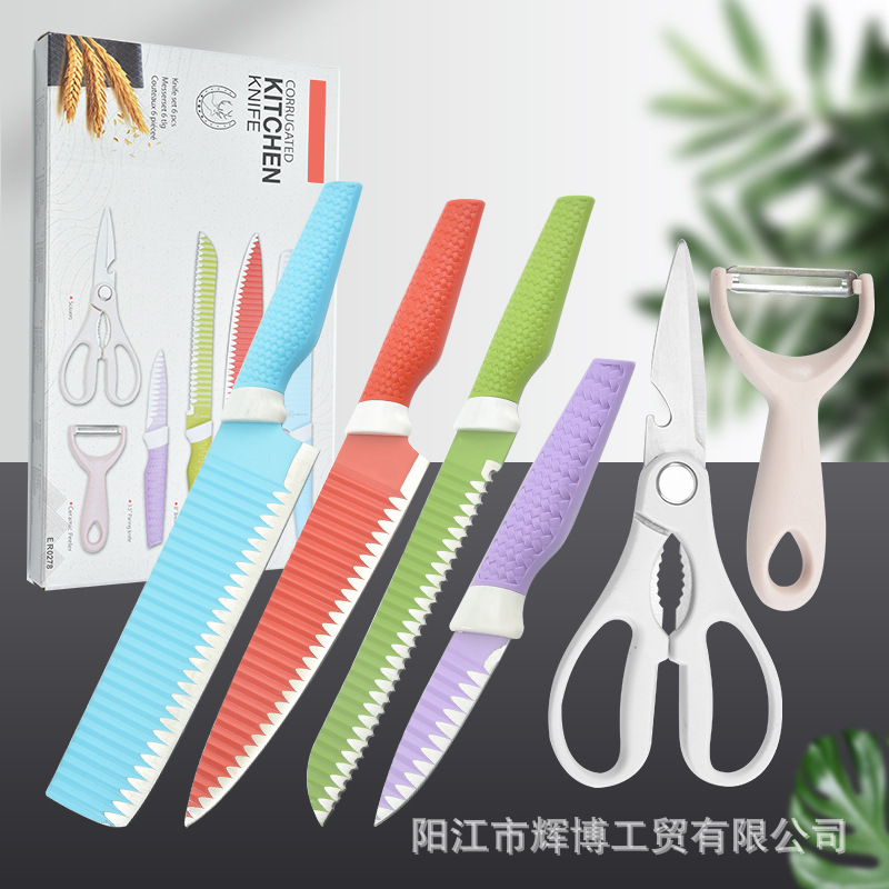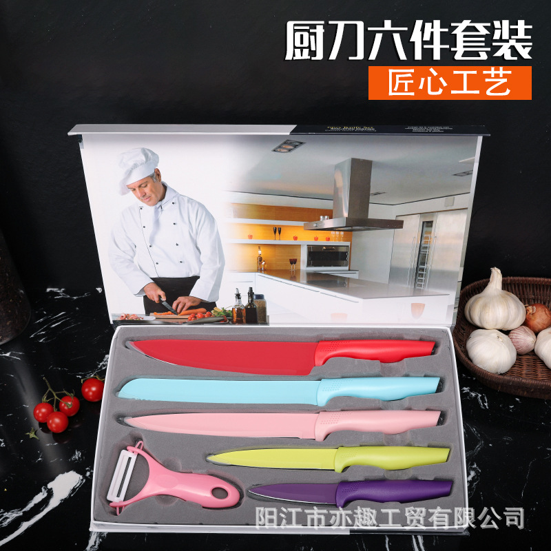 工場卸売包丁セットカラースプレーノンスティックコーティングシェフナイフユニバーサルナイフ6点セット外国貿易クロスボーダー