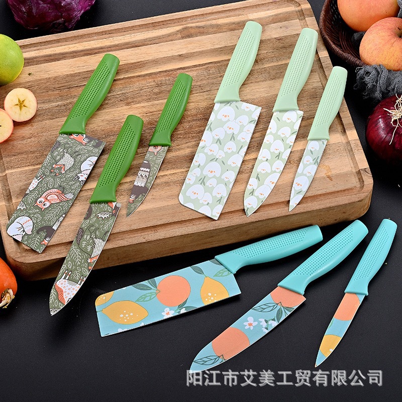 ステンレス鋼包丁 3 点セット家庭用プリントスライス包丁シェフナイフフルーツピーリングナイフギフトナイフセット