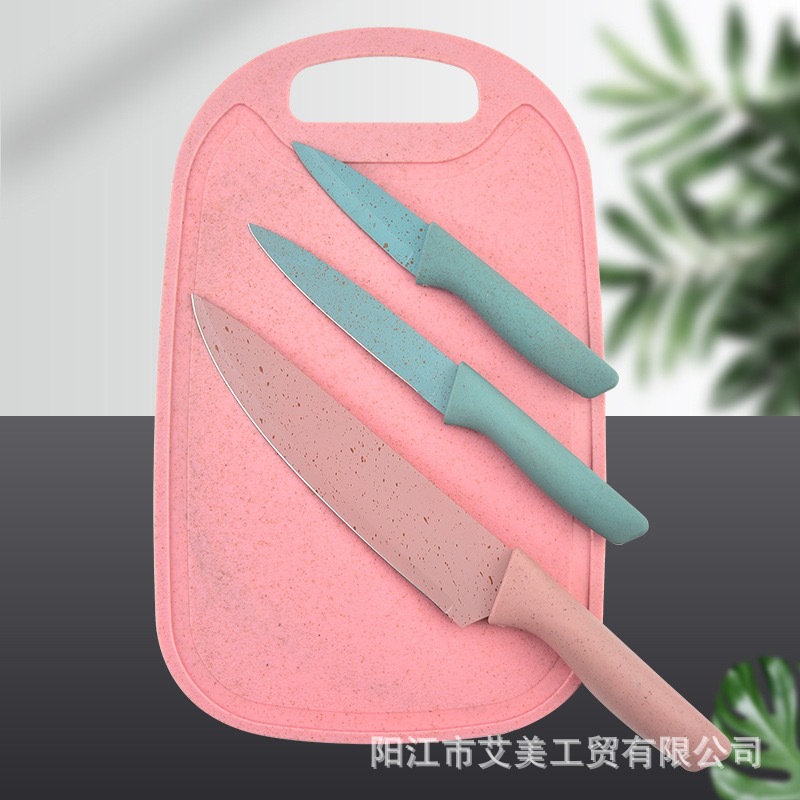 ステンレススプレー塗装小麦わら両面吸盤まな板セットカラーシェフナイフ多目的ナイフフルーツナイフ4点セット