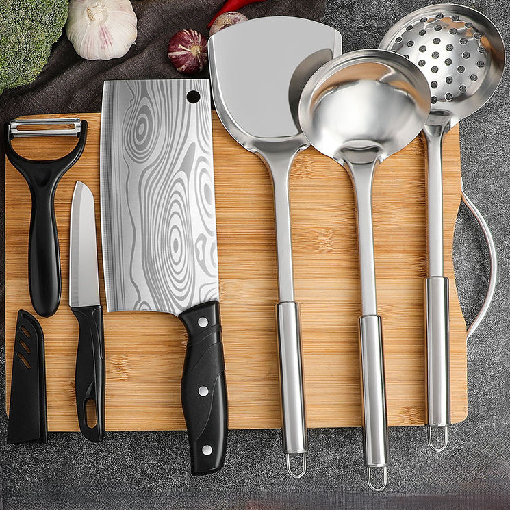 包丁とまな板セット、家庭用鋭い包丁組み合わせ、包丁、寮用フルセット、スパチュラとスプーン、キッチン用品ツーインワン