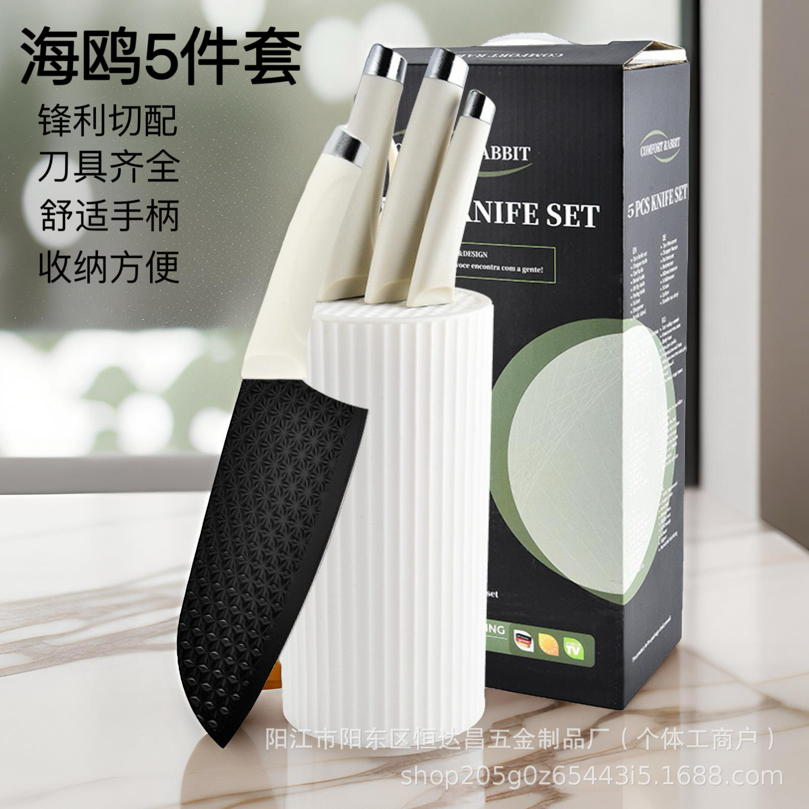工場でカスタマイズされたステンレス鋼の包丁セット、シーガルハンドルとシリンダーナイフホルダー付き、5点セットの家庭用包丁セット