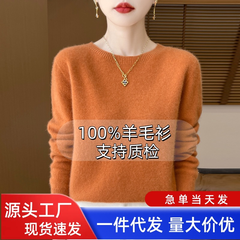 一線の成衣100ウールのニットの女性の丸首の頭のゆったりしている底のシャツの秋冬の長袖の純色のセーター