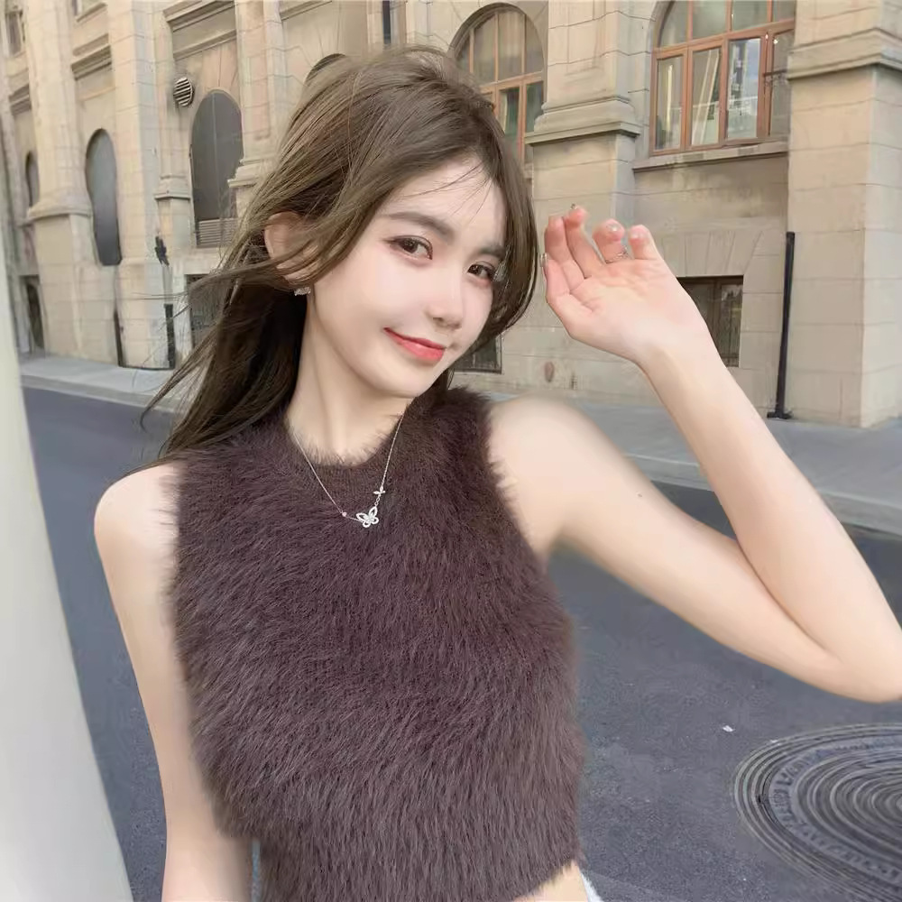 ミンクのベストの女性秋冬のセクシーな袖なしの毛のふわふわした短い上着の柔らかいモチモチの中にベルベットのシャツを掛けます。