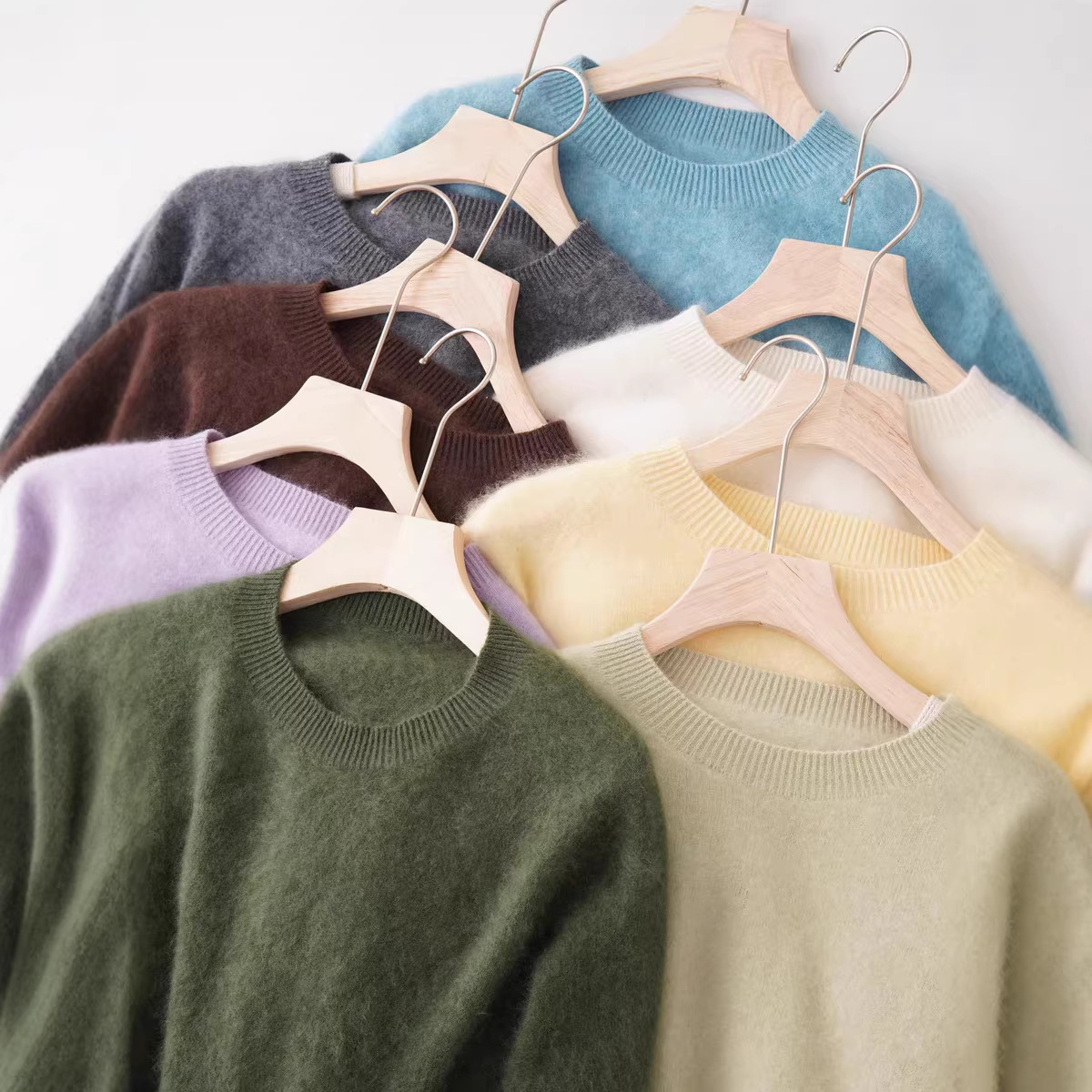 【起毛シリーズ】カシミヤ5% ウール95% ラウンドネック/Vネック シームレス起毛カシミヤセーター レディース セーター 25年新作