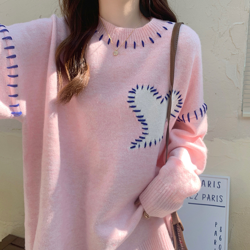 韓国スタイルのロープピンクマービッグサイズセーター女性のプルオーバー秋と冬の新しいソフトワックスのような怠惰なスタイルのルーズニットジャケット