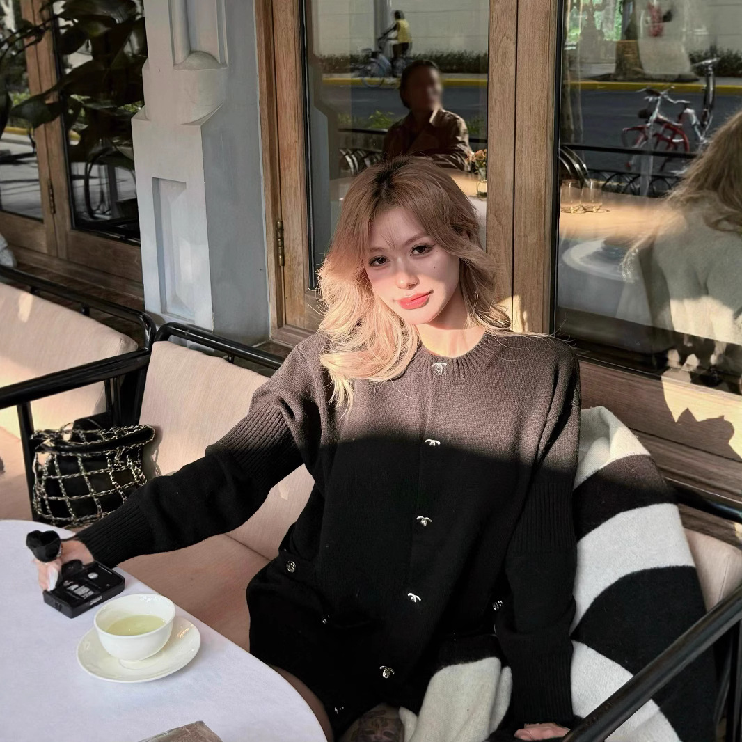高バージョン既製品 C チャン小香風スクールバッグバックルニットカーディガンダブル C バックル男性と女性の同じスタイルのカーディガンセーター