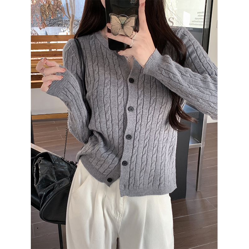 秋の韓国版ツイストラウンドネックニットのカーディガンはシンプルでファッション的でカジュアルで快適です。