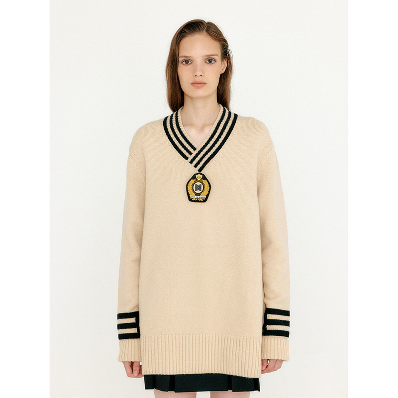 韓国版eenkミディアムセーター女性長袖vネックピンバッジニット上着大衆秋冬新作
