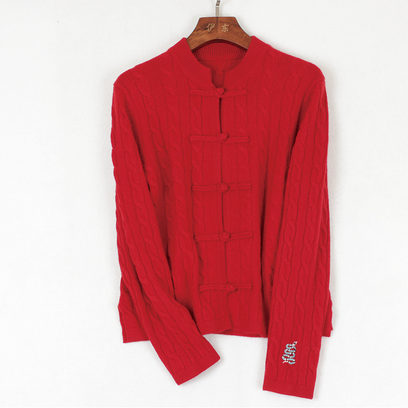 7針の花のカシミヤの蛇の年の刺繍の装飾の女性のセーターの手作りの皿は中国式の顔の年の赤いカーディガンを掛けます。