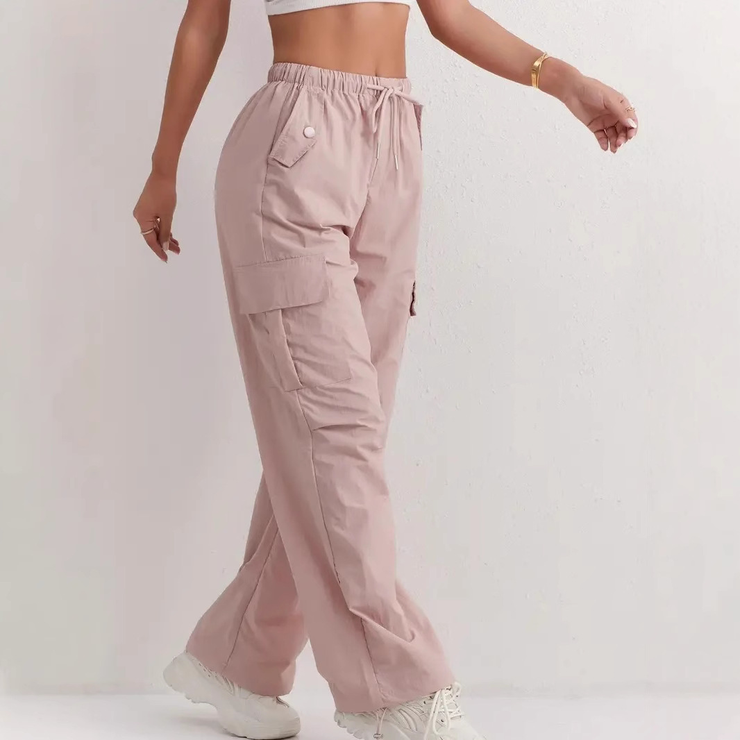 アメリカの工装ズボンの女性の秋の2024の新型の高腰の垂直感の速乾のズボンのカジュアルな広い足のスポーツのズボン