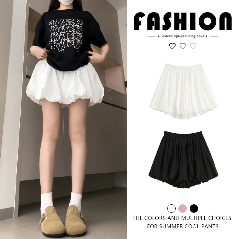 ホワイトフラワーパンツスカートレディース夏薄手2025新作ハイウエストカジュアルチュチュスカートAラインワイドレッグランタンショーツ