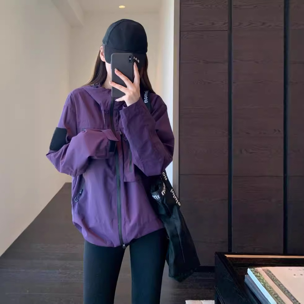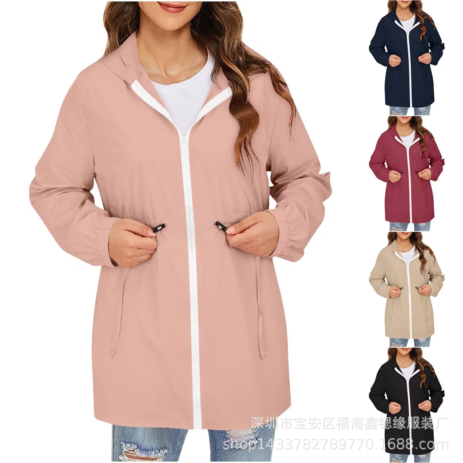 ヨーロッパとアメリカ 2025 アマゾンジャケットジッパーパーカー無地軽量屋外防雨ジャケットジャケット女性の服