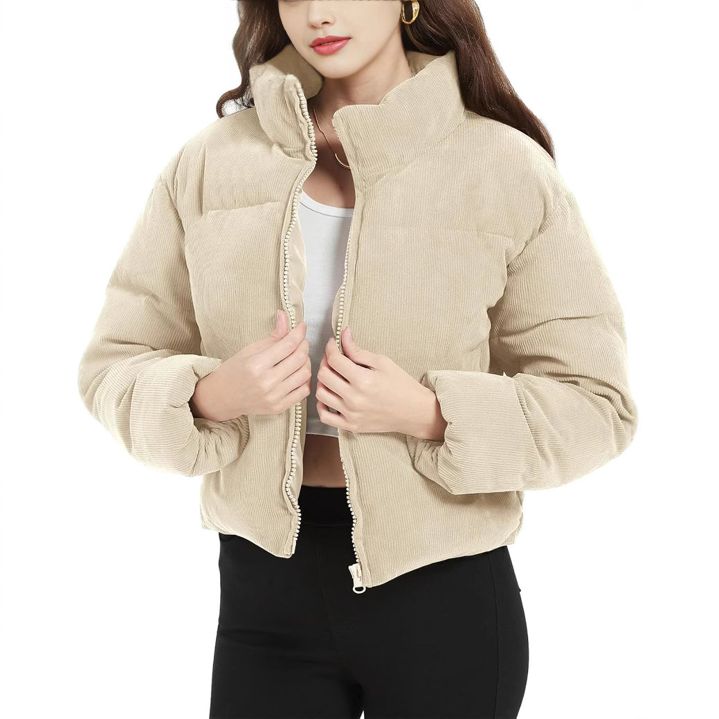 外国貿易アマゾン女性式の短いコーデュロイジャケット冬ジャケット保温長袖ジッパー保温綿服コート