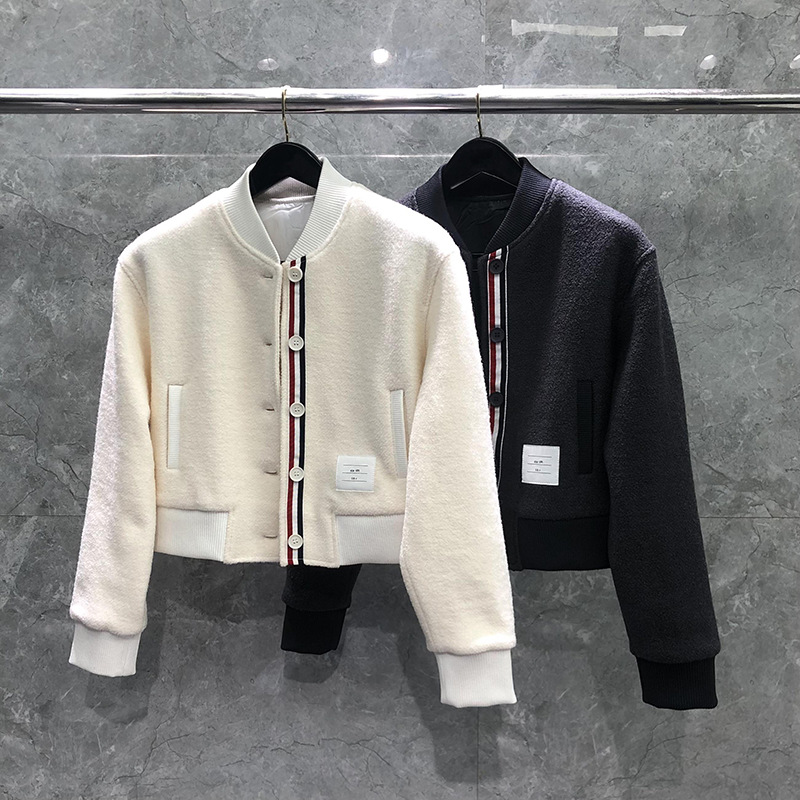 TIME BREATHEレディースtbショートジャケット秋冬新作バックリボンウール立襟シングルブレストジャケット