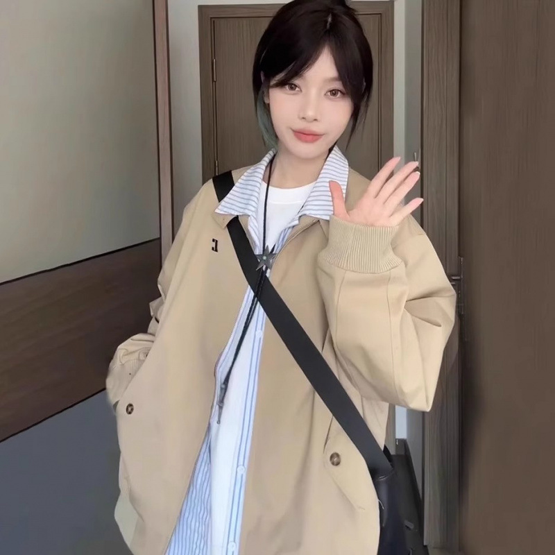 突撃服の女性コート2024年の新型工装春と秋のゆるいサイズの防風女性の短い上着