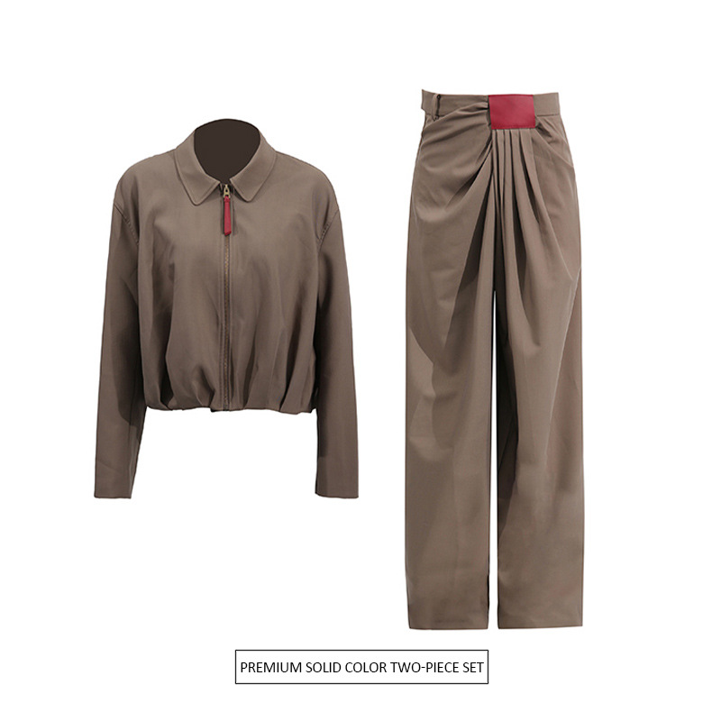 シンプルカジュアル無地ツーピースセット 2025 新シルエットラペル長袖ジャケット + ファッションハイウエストカジュアルパンツ女性