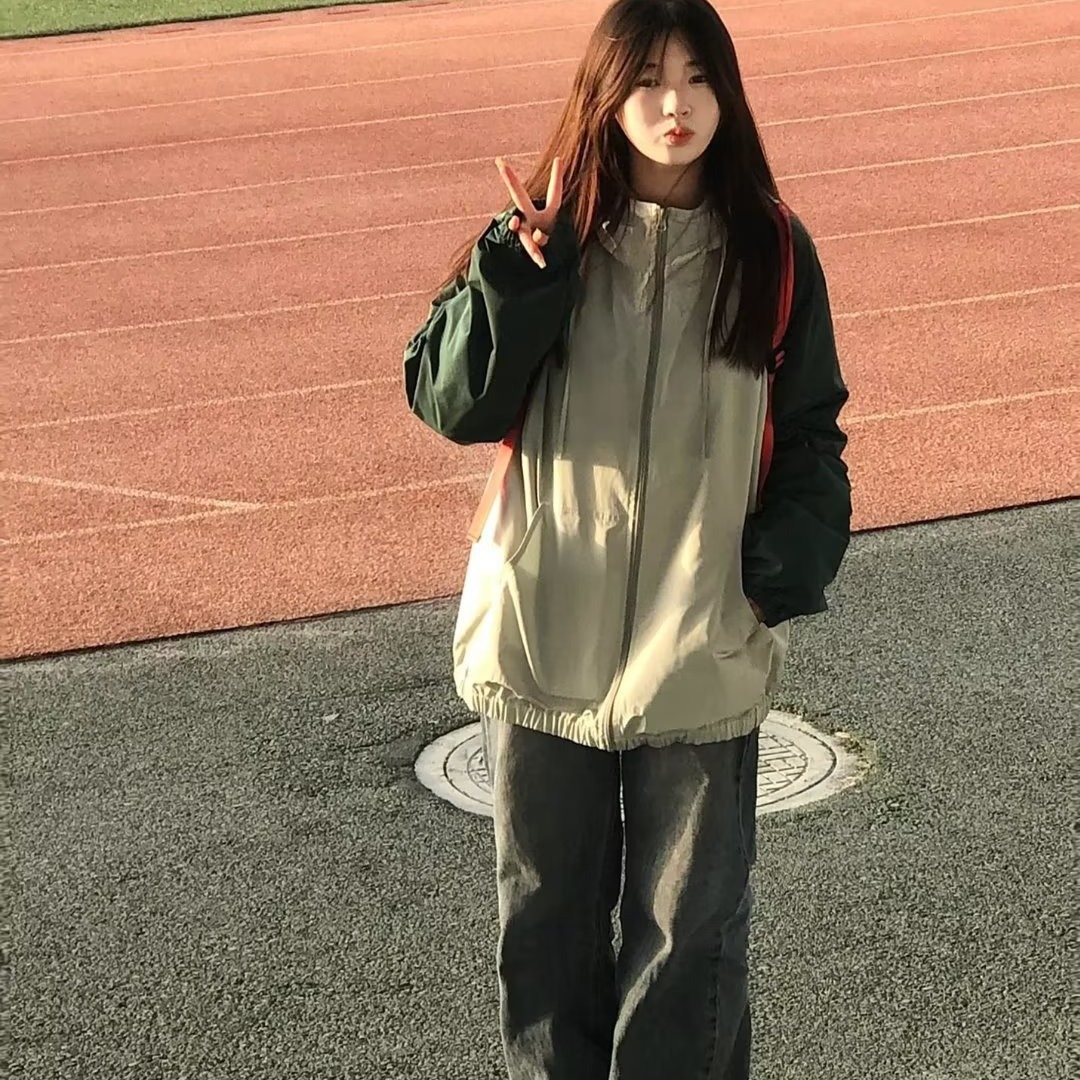 原宿レトロ風衣コート女子学生春秋シンプルでゆったりとしたカジュアルなファッションジャケットの上着