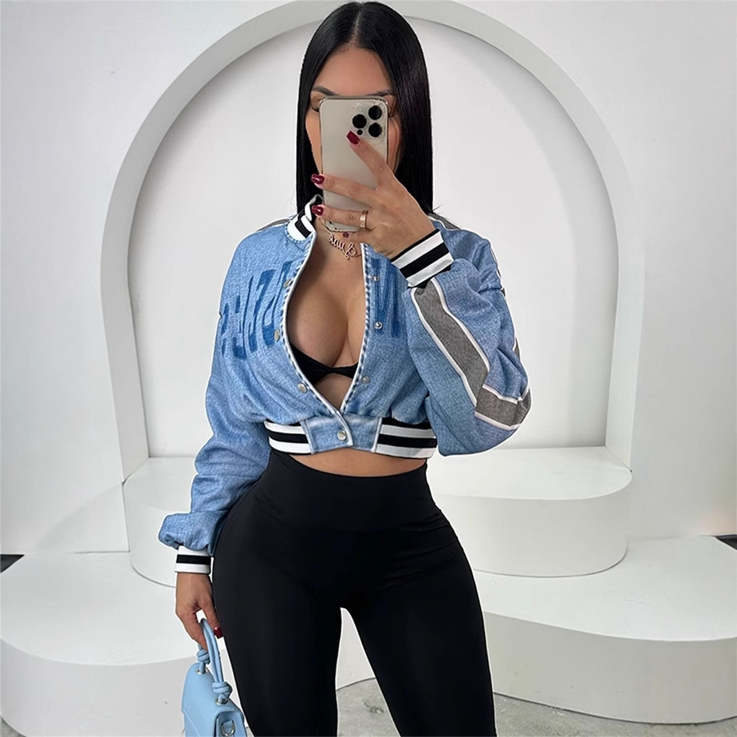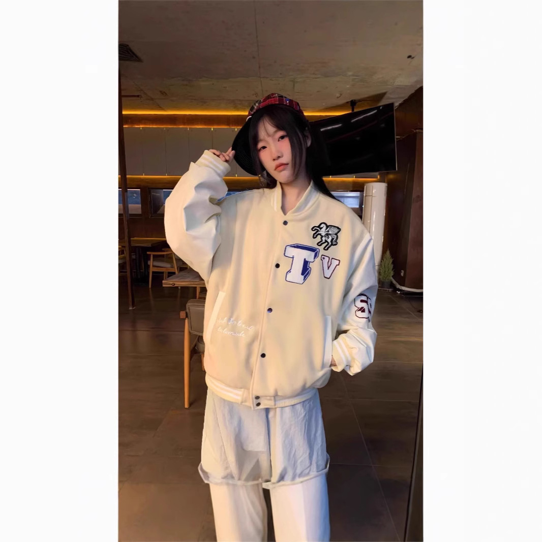 アメリカンレトロギャルアルファベット刺繍野球服レディースy2k秋ゆるいカジュアルショートジャケット女性