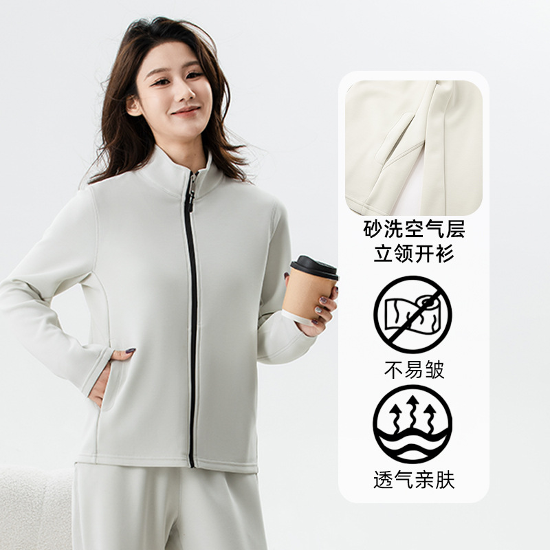 レディース砂洗空気層生地スタンドカラーステッチカーディガンカジュアルスポーツ風コートL570