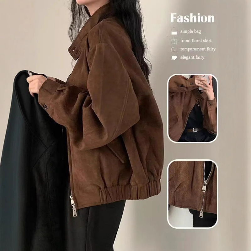 速卖通越境貿易卸売秋冬婦人服新作スエード風パイロット長袖ジャケット