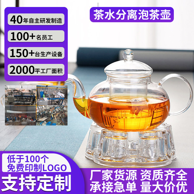 卸売り高ホウ素シリコンガラス茶水分離花ティーポット厚さ透明ろ過ガラス泡ティーポット耐高温茶器