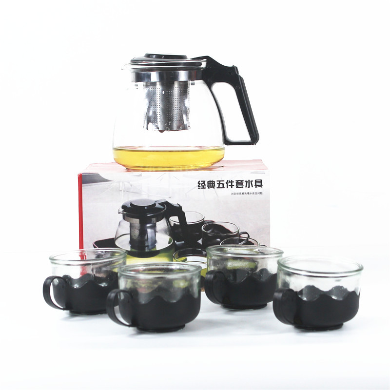 家庭用ガラスティーポットカップ5点セット大容量増粘ケトルカップ高価値透明ティーポットカップ