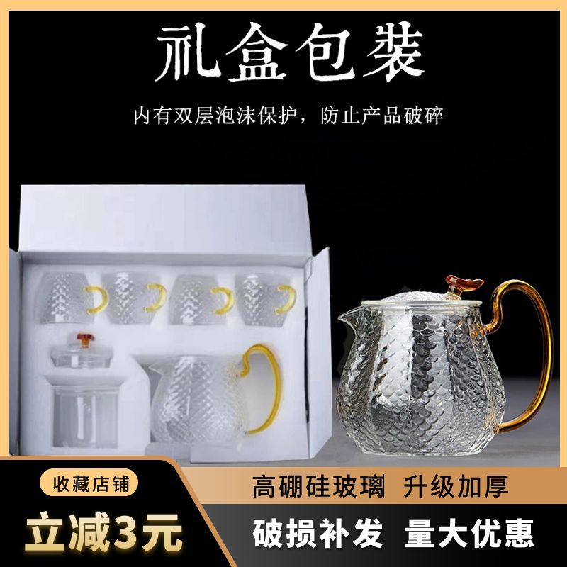 卸売りハンマー模様耐熱ガラスろ過泡ティーポット家庭用茶水分離泡茶器花茶器ギフトボックスセット