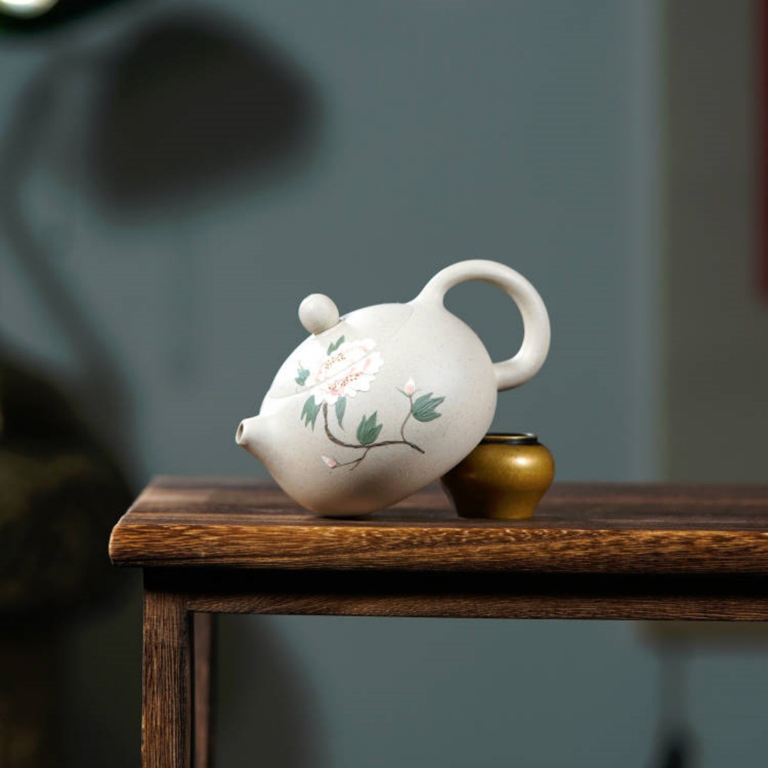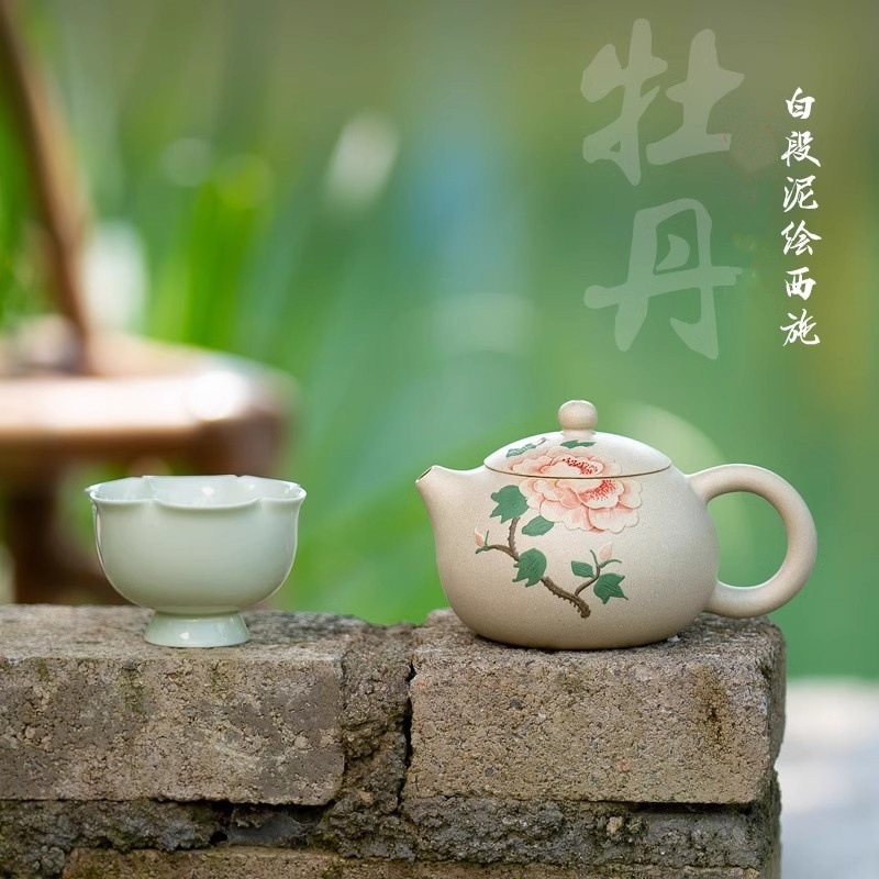 宜興本物の紫砂壺オリジナル鉱山白翡翠セクションシンプルクリエイティブ大牡丹西施壺家庭用ティーポット高級茶