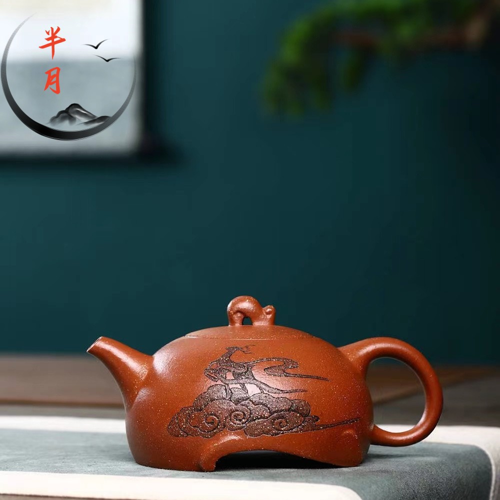 宜興純手作り紫砂壺名家原鉱魚仔砂半月ティーポット工夫茶器礼箱