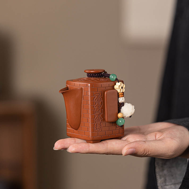 宜興本物の紫砂壺オリジナル鉱山セクション泥シンプルクリエイティブ高温焼成観光漢瓦壺家庭用高級茶セット