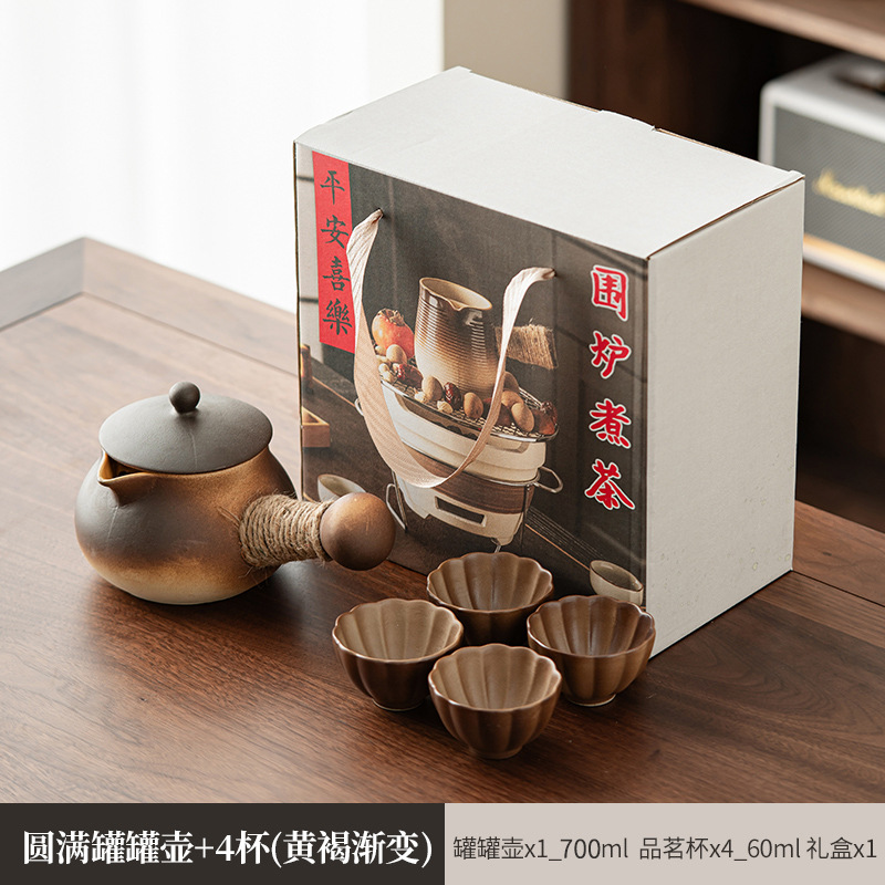 囲炉煮茶高級缶ポット茶器家庭用屋外煮ミルクティーポット屋外ネット赤ギフトボックスセットプレゼント