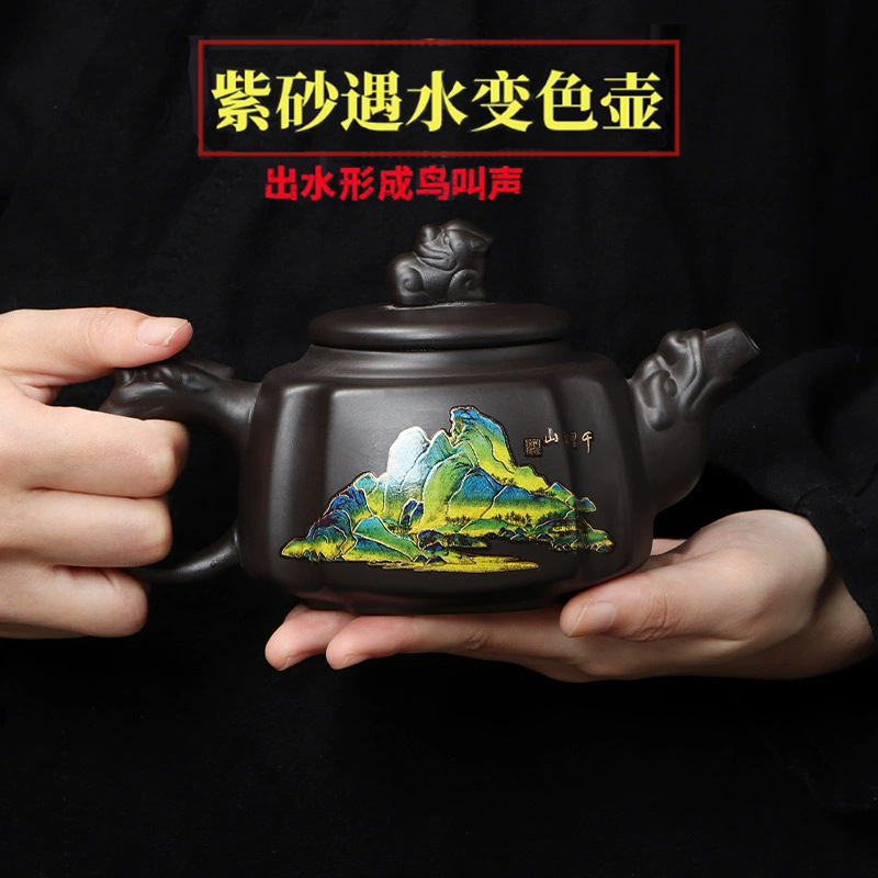 熱にさらされると色が変わる紫粘土のティーポット、千里江山鳳鳴ティーポット、鳥の鳴き声ギフトセット、紫粘土ティーポット、家庭用ティーセットギフトボックス