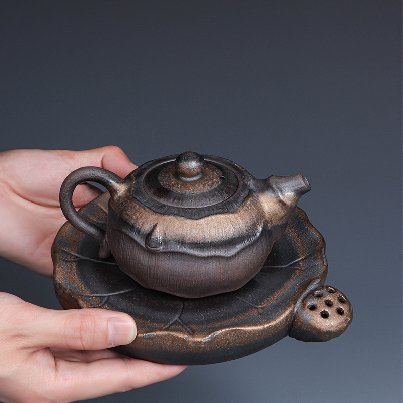 日本式粗陶鉄錆釉薬ティーポット古銅金泡ティーポット濾過陶磁器レトロ単壺家庭用茶器卸売り
