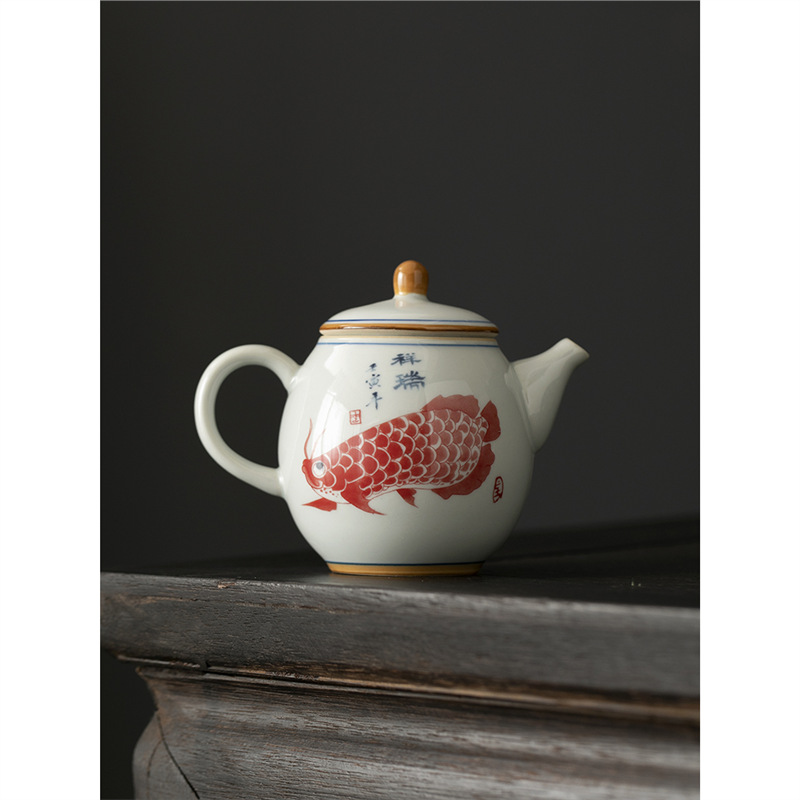 青花竜魚の小さいティーポットの家庭用の大きいサイズの工夫のティーポットの陶磁器の濾過はティーポットのお茶を入れます。