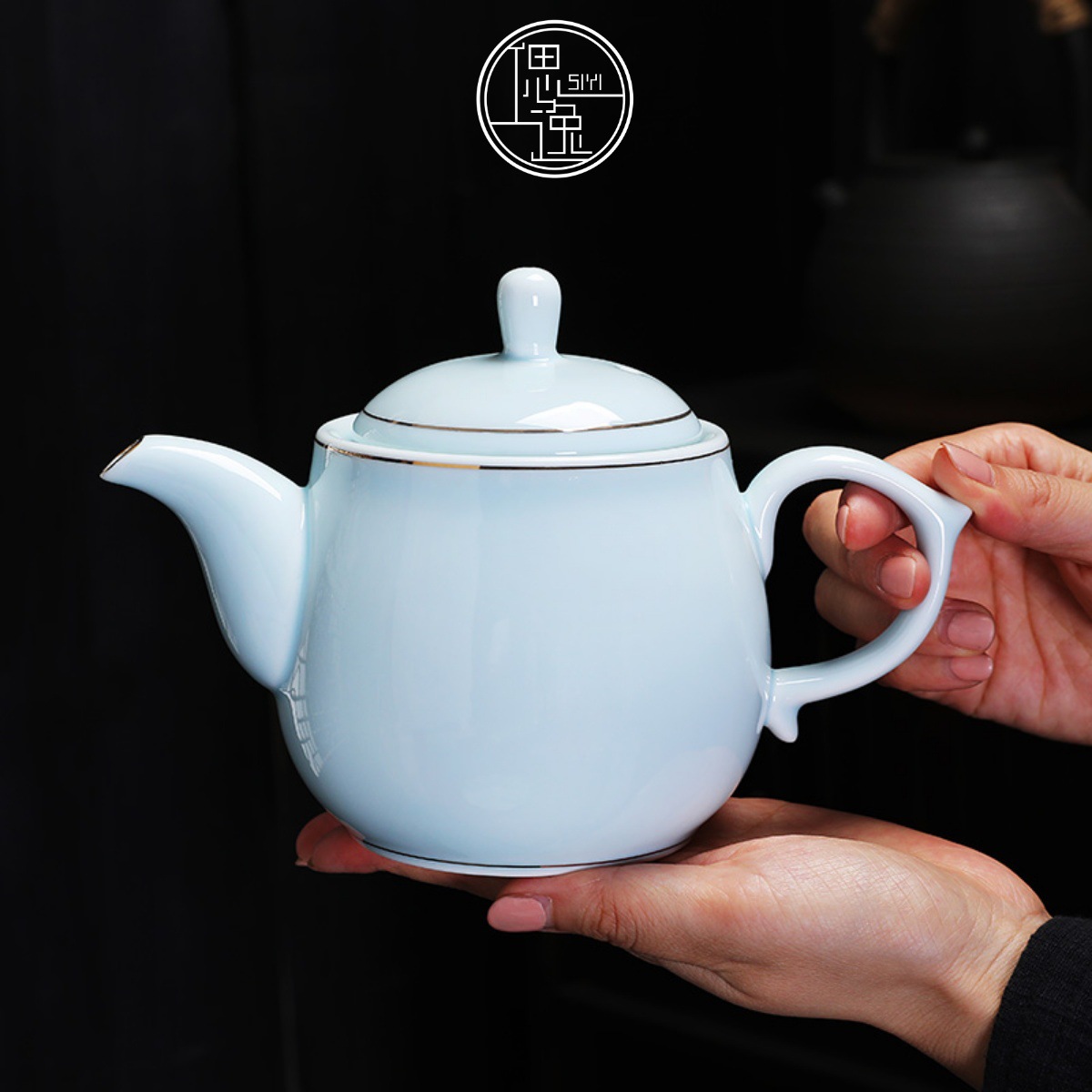 猫月白汝窯大ティーポット開片陶磁器家庭用工夫茶器泡ティーポット単壺はロゴを印刷できます。