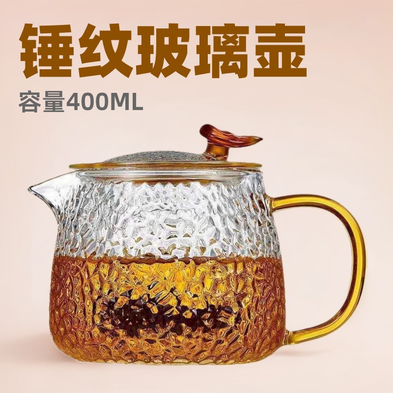 ハンマーガラス泡ティーポット家庭用高ホウ素シリコンガラス煮茶器透明ろ過花ティーポット湯たんぽ