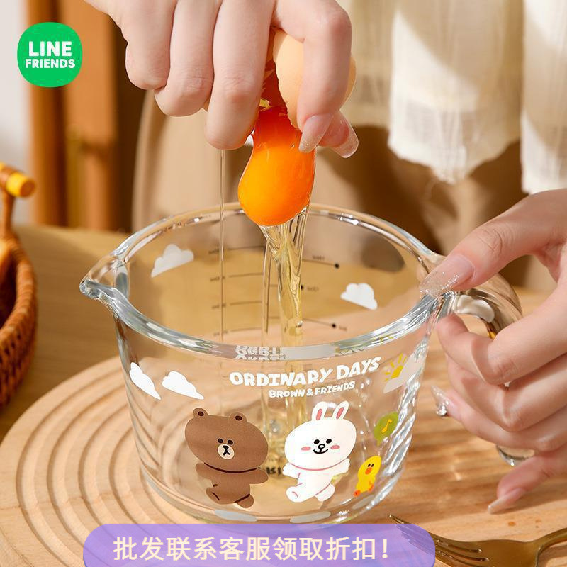 LINE FRIENDS計量カップ家庭用スケール付きミルクカップ朝食ガラス計量カップキッチンベーキングスケールボウル