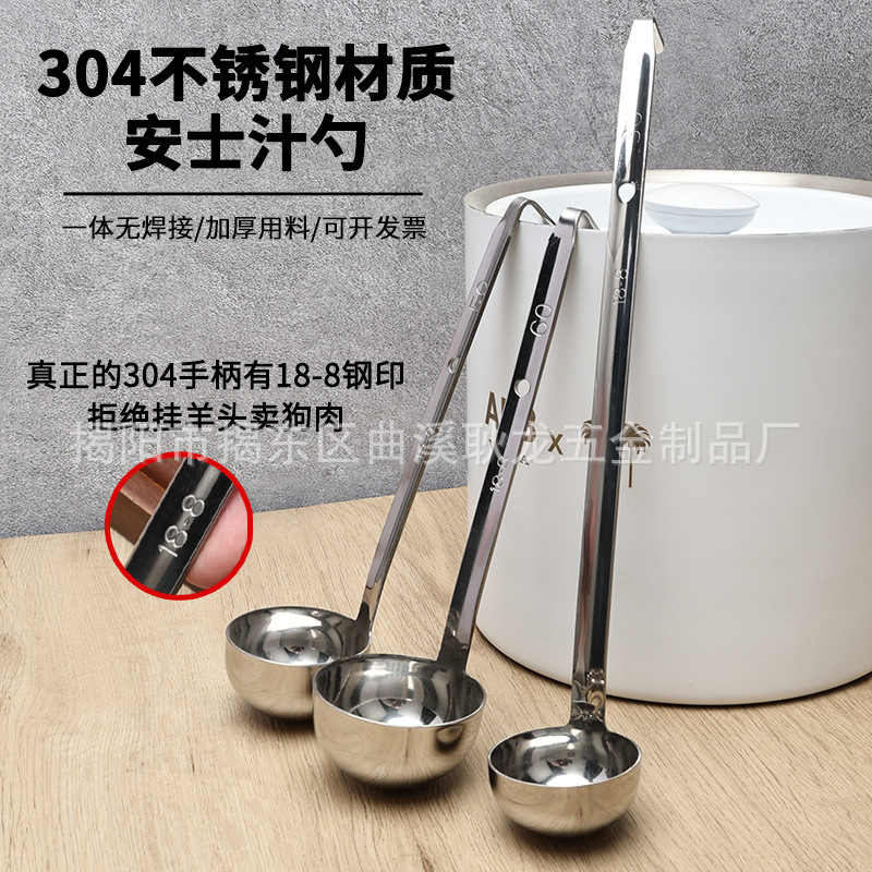 厚いステンレスの汁の殻の一体量のスプーンのスープの殻の焙煎量のスプーンのミルクのお茶の店のオンスのスプーンのミルクの蓋のスプーンはフックがあります。
