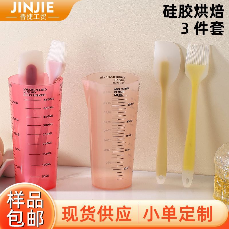 新商品の透明計量カップとダブルスケールのカップps計量カップ付きビーカーのスクレーパーとオイルブラシの三点セットのベーキングセット