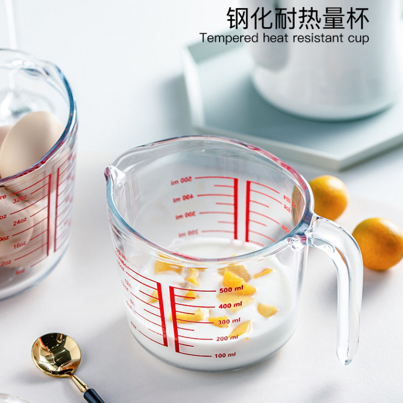 厚いガラス計量カップキッチン焙煎小麦粉家庭用朝食ミルクカップスケール付き耐高温大容量