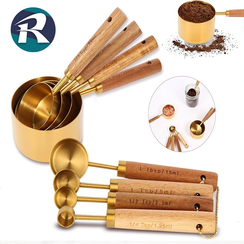 ステンレススチール计量カップ计量スプーンセットキッチンベーカリーツールスケール付き计量スプーンデザートコーヒー计量スプーンゴールド